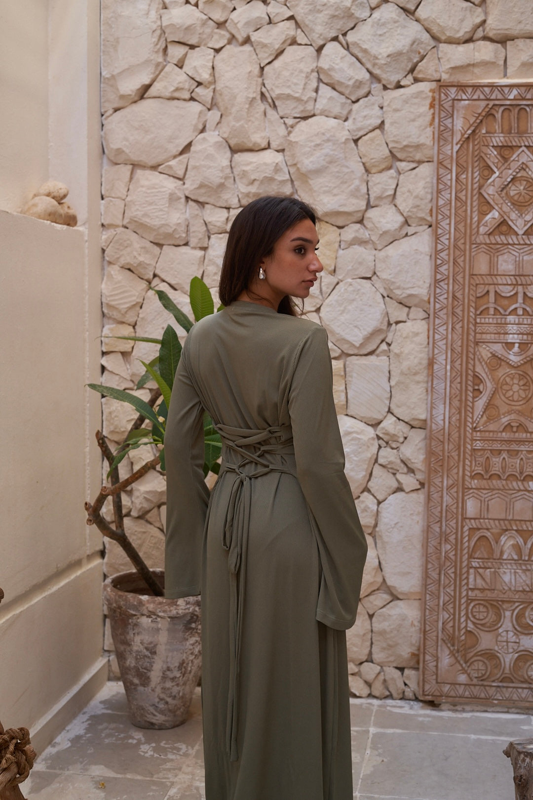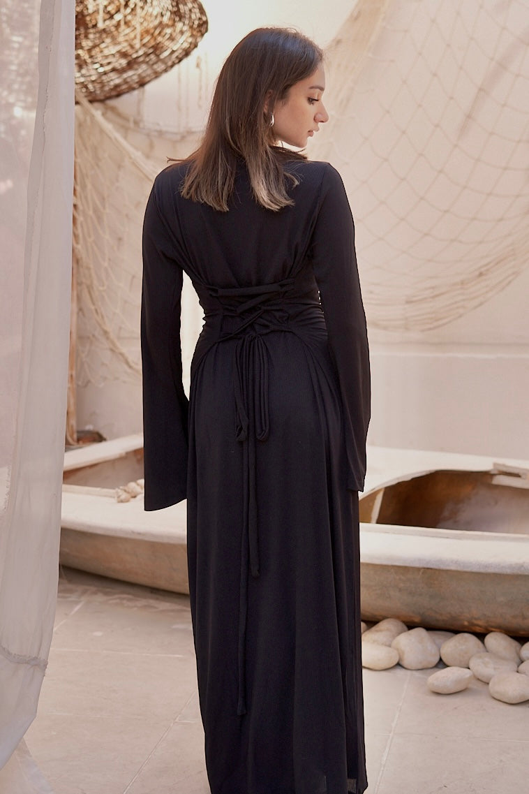 A statement piece with a lace-up back, flared sleeves, and a flattering fit. Bold, feminine, and effortlessly elegant.